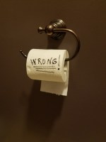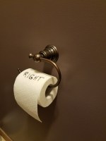 How does this gadget save marriages? Because before you have time to mumble “who put the toilet paper on wrong” under your breath you can just whip that roll off the rod and quickly turn it around. You can even sleep through the whole process. I can testify. Bottom line: It no longer matters how the toilet paper is placed on its holder!! Remarkable!!!