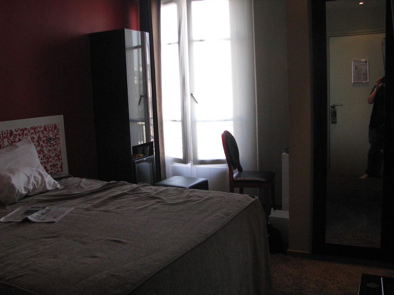 France. 2008. In the 12th district of Paris. See the floor space in this picture? That’s all the floor space in this lovely room. See that tallish piece of furniture? It was a combination closet/mini-bar fridge. So convenient. Room for hanging two items of clothing. After only one sleepless night spent searching the internet for Marriott hotels in Paris ($$$$$), I marched myself down to the front desk.