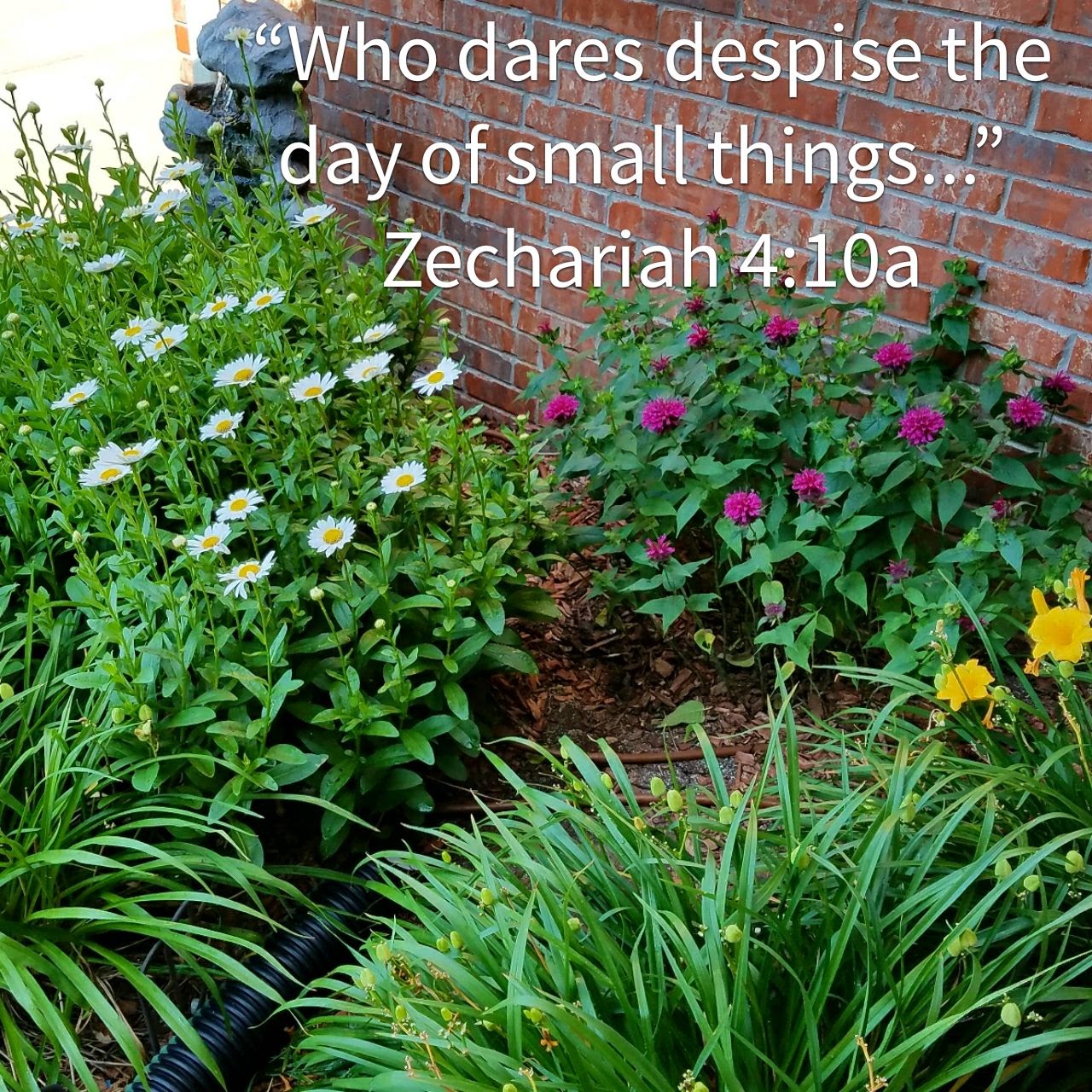 There is a scripture that keeps coming to my mind…. “Who dares despise the day of small things?” Written by the Old Testament prophet Zechariah, who was talking about the slow process of rebuilding the temple of God that had been destroyed by Babylon. Big beautiful temple reduced to nothing.