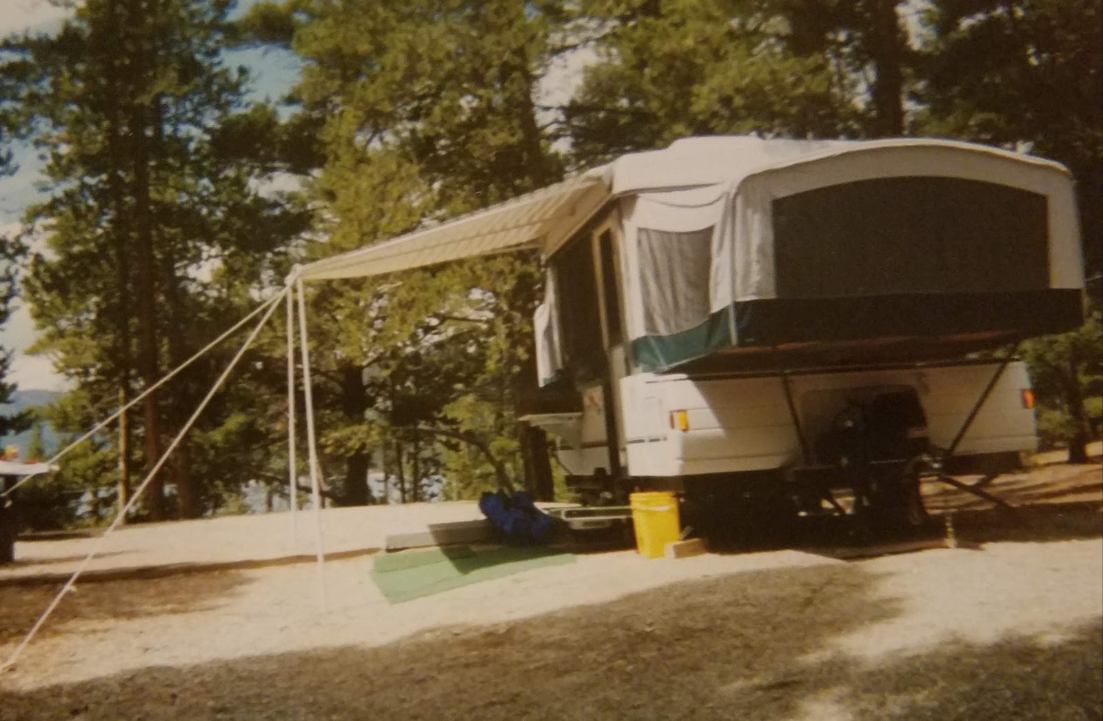 And shortly after this trip, we purchased our next camper. A brand new Coleman Cheyenne tent trailer complete with air conditioner and porta-potty. Ahhhhhh. No leaks, no alternators, no flathead screwdriver needed to get her going.