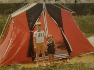 Then we bought a used Palomino tent trailer which was all tricked out with a stove AND oven, as well as a tiny little electric fridge. It did not, however, have AC. Or a toilet. But it was several steps up from above tent and we had good times in the old Palomino.