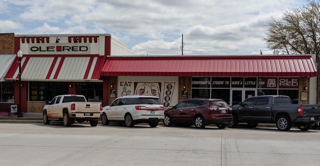 Tishomingo is a bustling little city thanks to Blake Shelton. We opted to stop in at the Ole Red Restaurant, which is next to the Ole Red Doghouse and outdoor performance area.