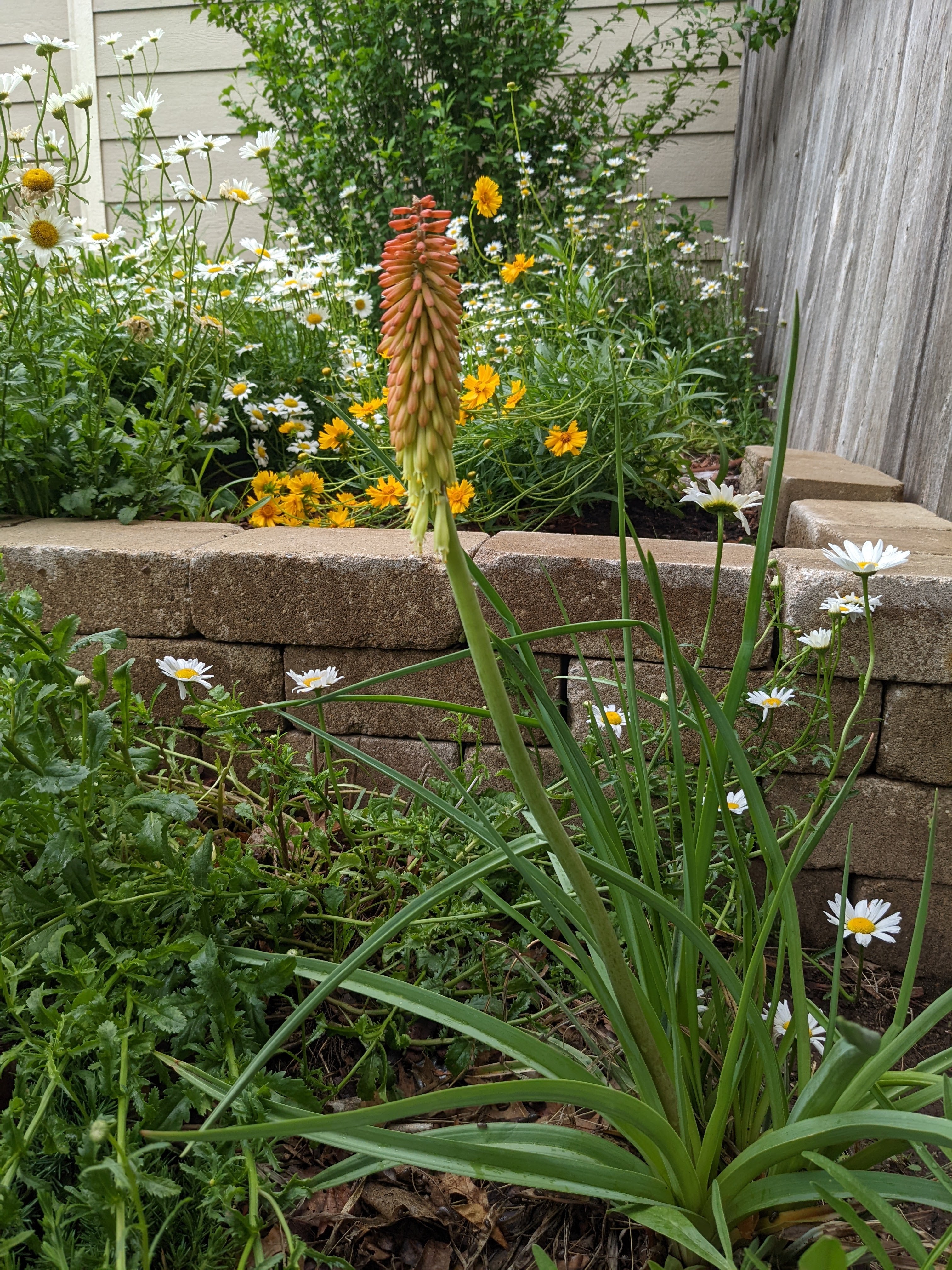 And now, I give you Exhibit C. This past May as I was casually looking over the plants in my side yard flower bed, what did I see but this lovely blooming plant. Red Hot Poker/Torch Lily. Such a gorgeous plant, but I’m telling you: I DID NOT PLANT IT!! A few years ago, like probably 5 or so years ago, I planted a Torch Lily in another part of the yard far from this area. And it did nothing. NO bloom, NO growth, just kind of sat there in the ground while I babied it along for a bit, then declared it a DNR and pulled the plug. Actually in frustration I pulled it up roots and all and just tossed it in an obscure area by the back fence. Uh, yeah. The fence you see in the picture. But…..it was dead, and five or more years had passed. I was so surprised, really dumbfounded that after all those years this long-forgotten plant grew, flourished, bloomed. How can that be? I didn’t plant it, I tossed its dry, dead remains and left it to rot.