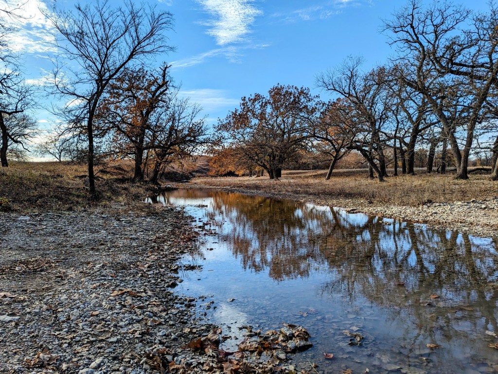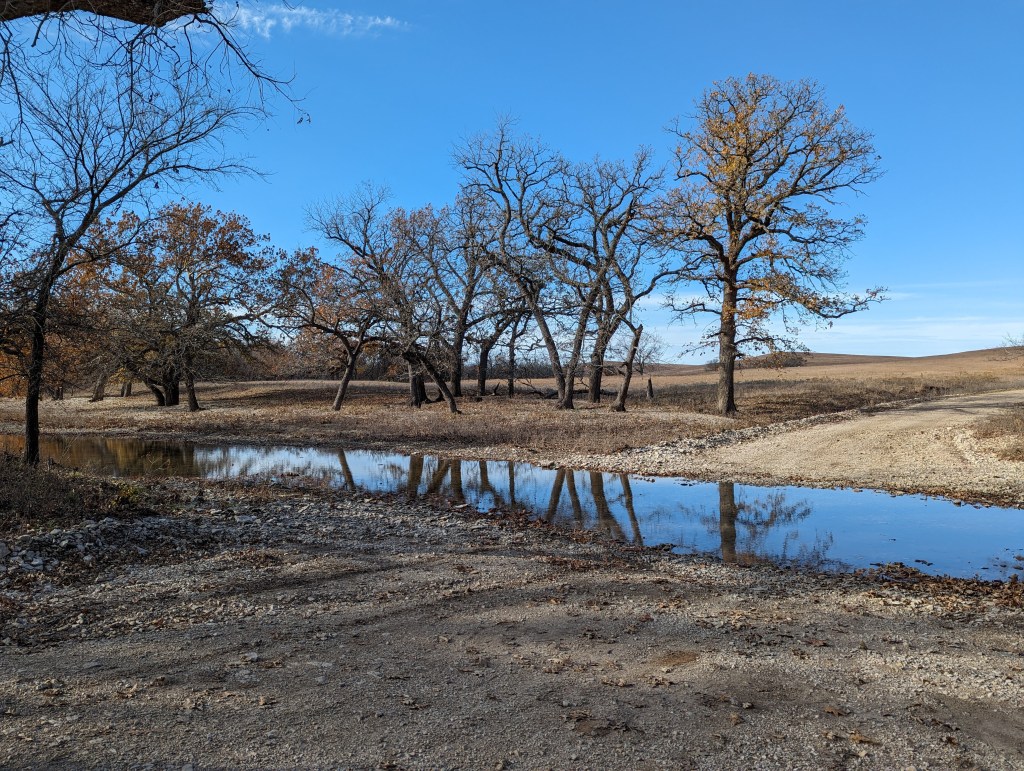 This may shock you but I didn’t take a bunch of photos. On another day after the spring burning of the Flint Hills is done when the green vegetation is astonishing, I’ll take more pics. On another day earlier in the fall color season, I’ll take more pics. But I promised pics and here they are. The water scenes are in Verdigris Crossing. Driving through the water is required. We’re in a drought. There was water from springs in many places. Isn’t it awesome how God provides what the open range cattle need? Truth? He always provides for his creation. You and me included. Also: take note of the stone cattle loading dock (or whatever it’s called).