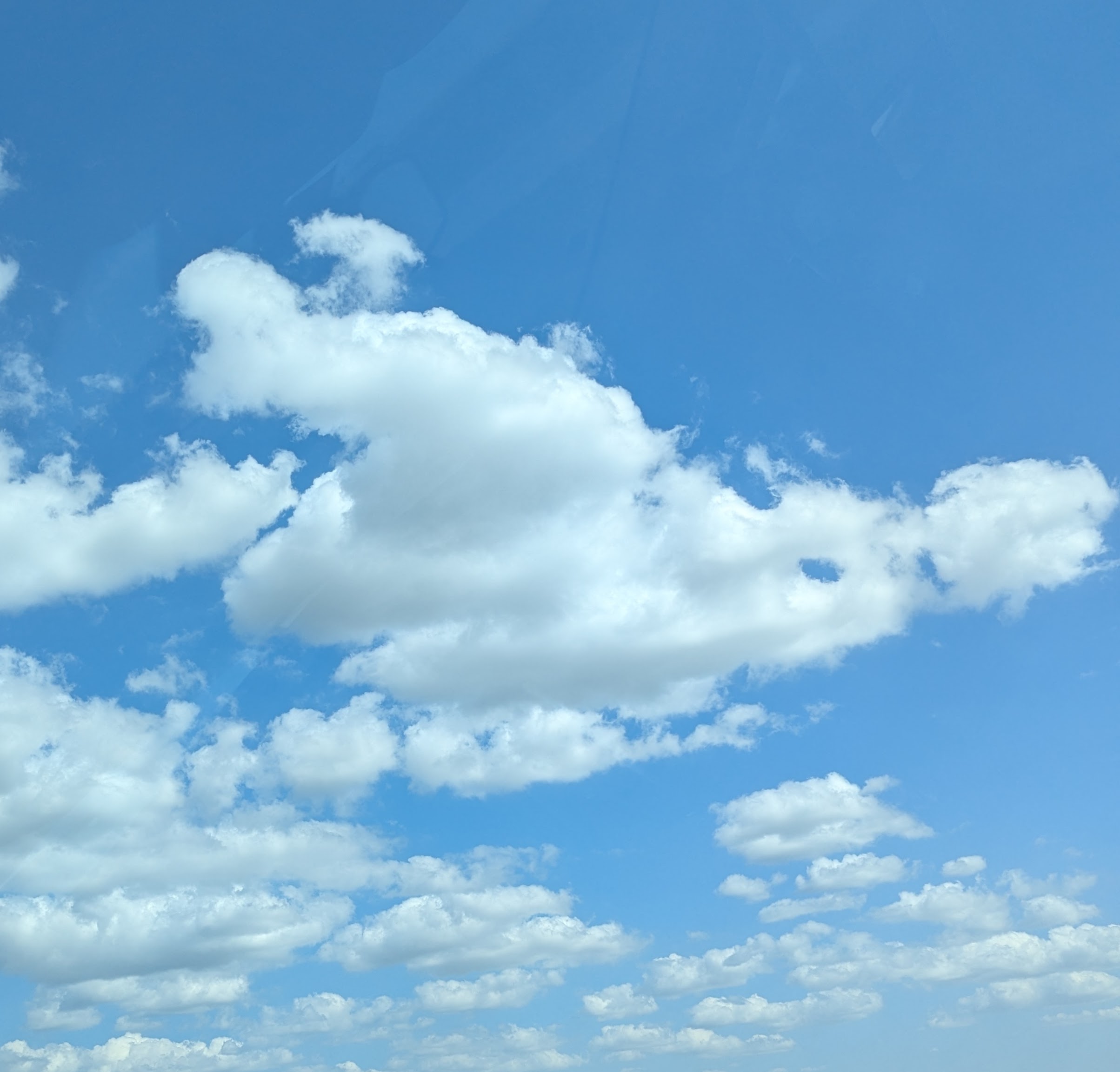 Clouds in the sky. I remember looking at the clouds and waiting, hoping, that soon they would provide just a wee bit of shade on our car.